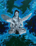 2005Portet van een sjamaan met adelaar op zijn schoot uitgevoerd in acrylverf en op hardboard,deels met penseel en deels met paletmes.