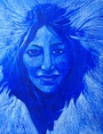 2006Expressieve portret van een Eskimovrouw uitgevoerd in acryl en witte aquarelpotlood op canvasboard