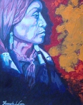 2006Een vrije benadering van een indianen portret,penseel en paletmeswerk op canvasboard.