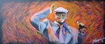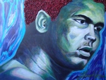 2012Een vrije benadering van een portret van Mohammed Ali. Doek,verdikkingsmiddel,grind en acryl.