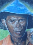 2012Een portret van een aziatische man gemaakt met acryl en pastel op aquarelpapier.