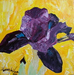2013Een bloemportret van een paarse iris.Realistisch uitgevoerd alhoewel niet fotorealistisch maar meer expressief vooral de achtergrond.Een combinatie van acryl vermengd met granulaat.