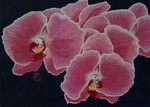 2005close-up van roze orchideeen gemaakt in acryl op canvasboard.