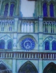 2012Een realistisch schilderij met expressief kleurgebruik met als onderwerp de Notre Dame te Parijs,ditmaal de achterkant naar aanleiding van een persoonlijke foto.