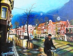 2012Alkmaar na een regenbui, een realistische maar toch ook expressief in kleurgebruik. Acrylverf op doek,aan de hand van een persoonlijke foto.